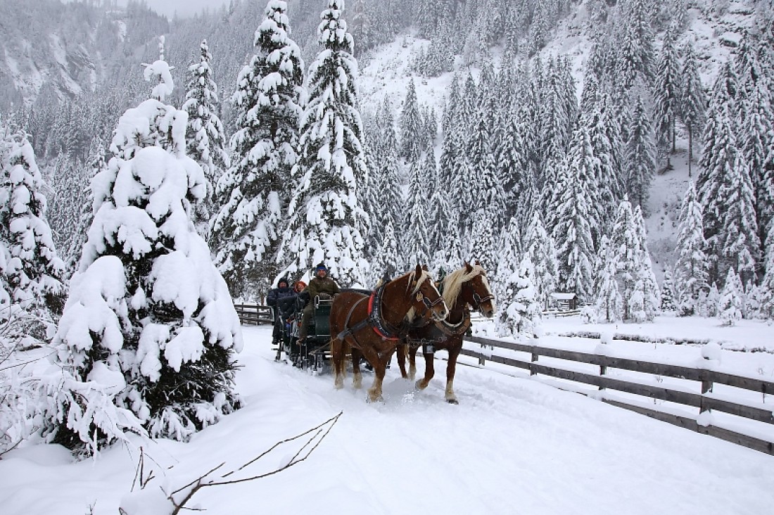 Erleben Sie ein Wintermärchen der besonderen Art bei einer romantischen Pferdeschlittenfahrt im Großarltal.